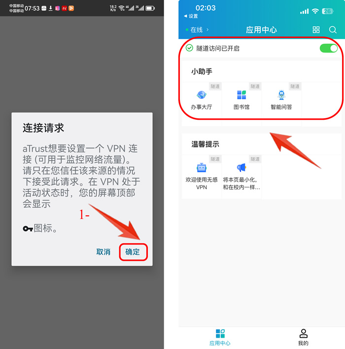 首次使用前,需要先下载并安装安卓版移动端无感VPN (aTrust)。